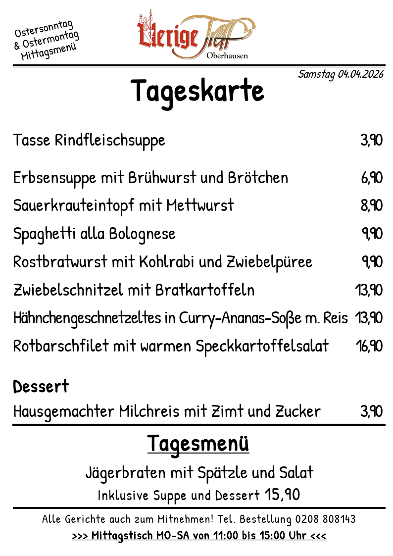 Ostern im Uerige Posted on 25.03.2023 by Der Baas Posted in Angebote, Saison, Speisen tagged with Angebote, Ostern, Saison, Sonderkarte