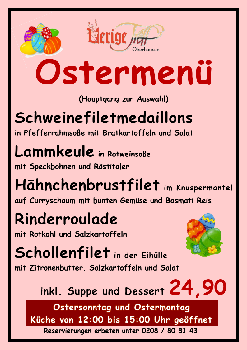 Ostern im Uerige Posted on 25.03.2023 by Der Baas Posted in Angebote, Saison, Speisen tagged with Angebote, Ostern, Saison, Sonderkarte